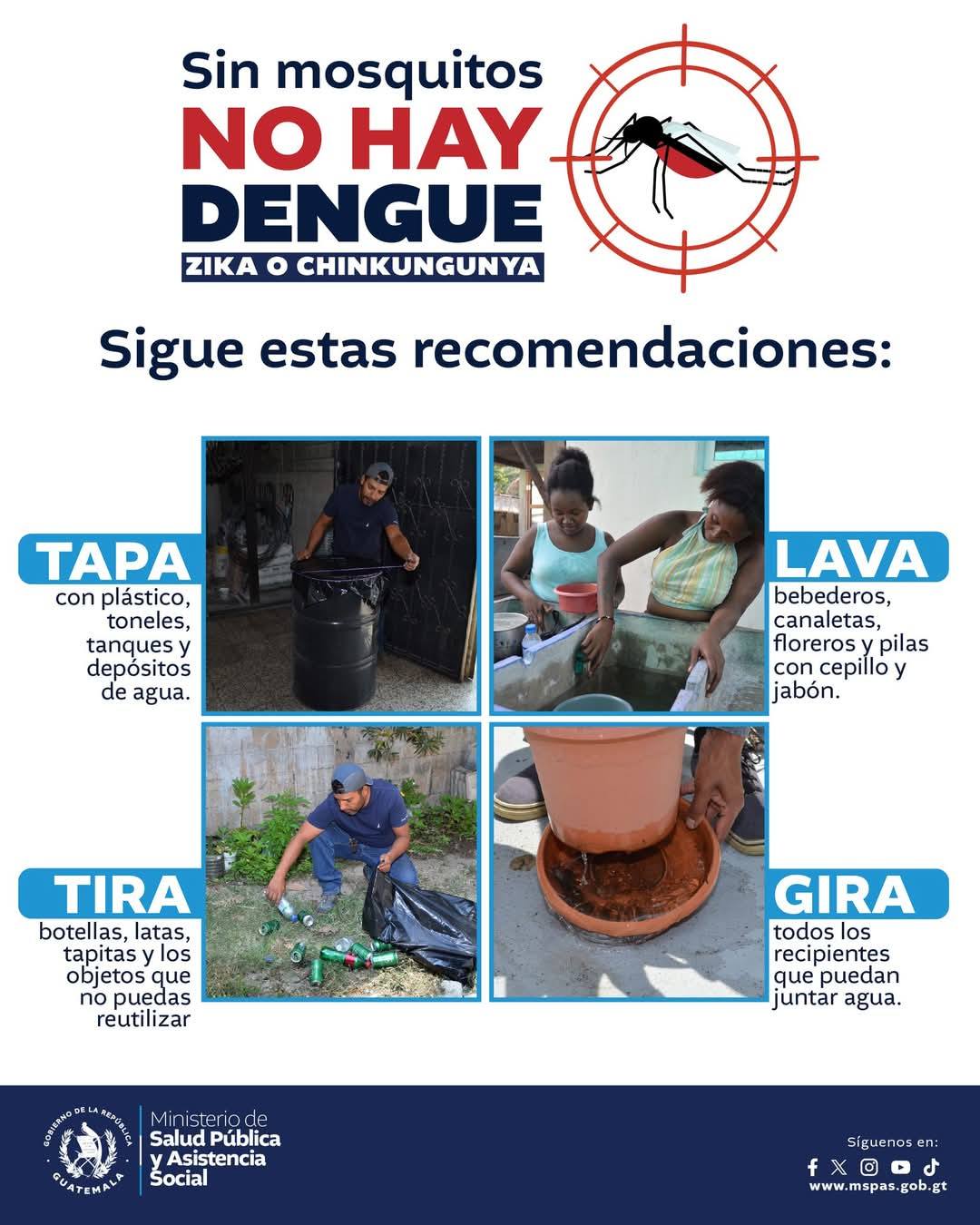 ¡Evitemos el Dengue, Zika y Chikungunya! Recuerda: Sin mosquitos, no hay enfermedades.