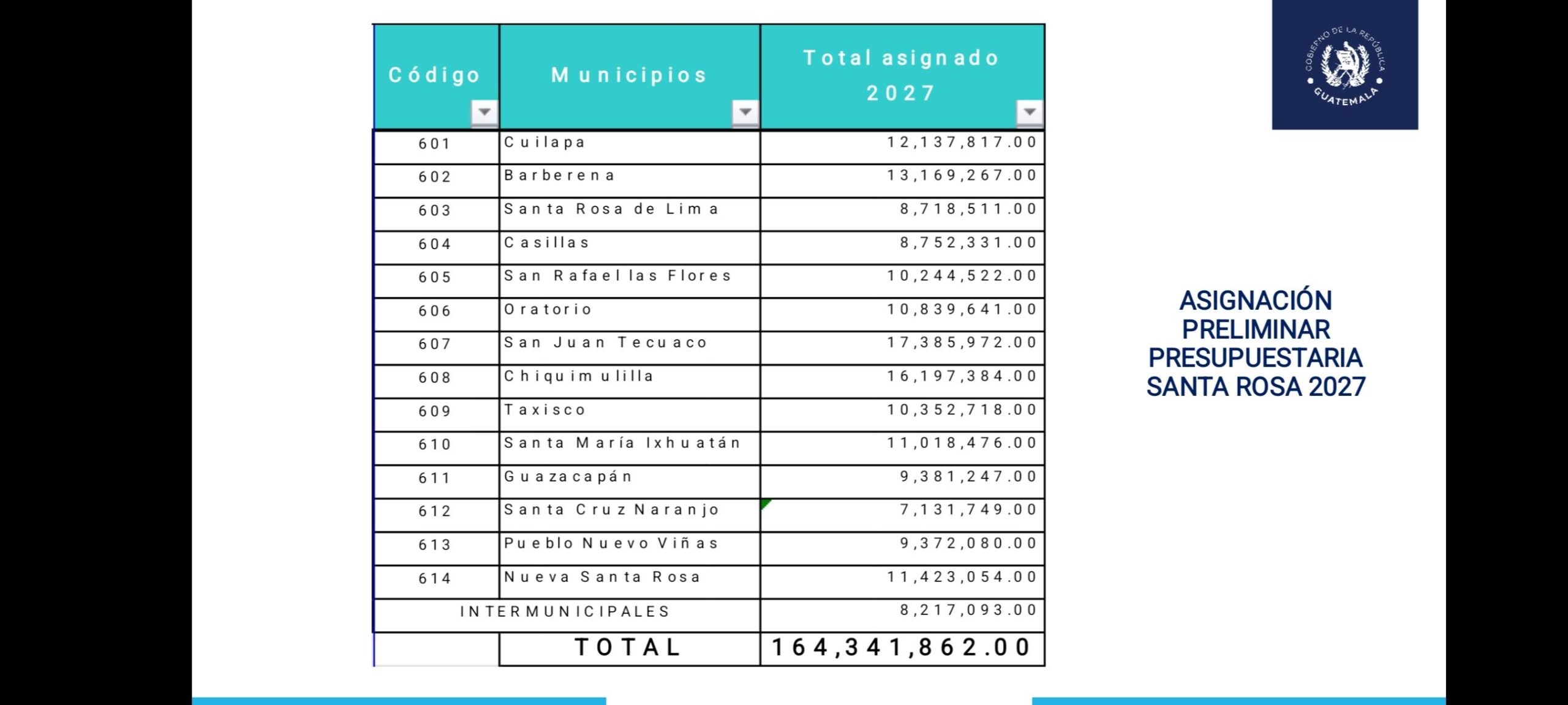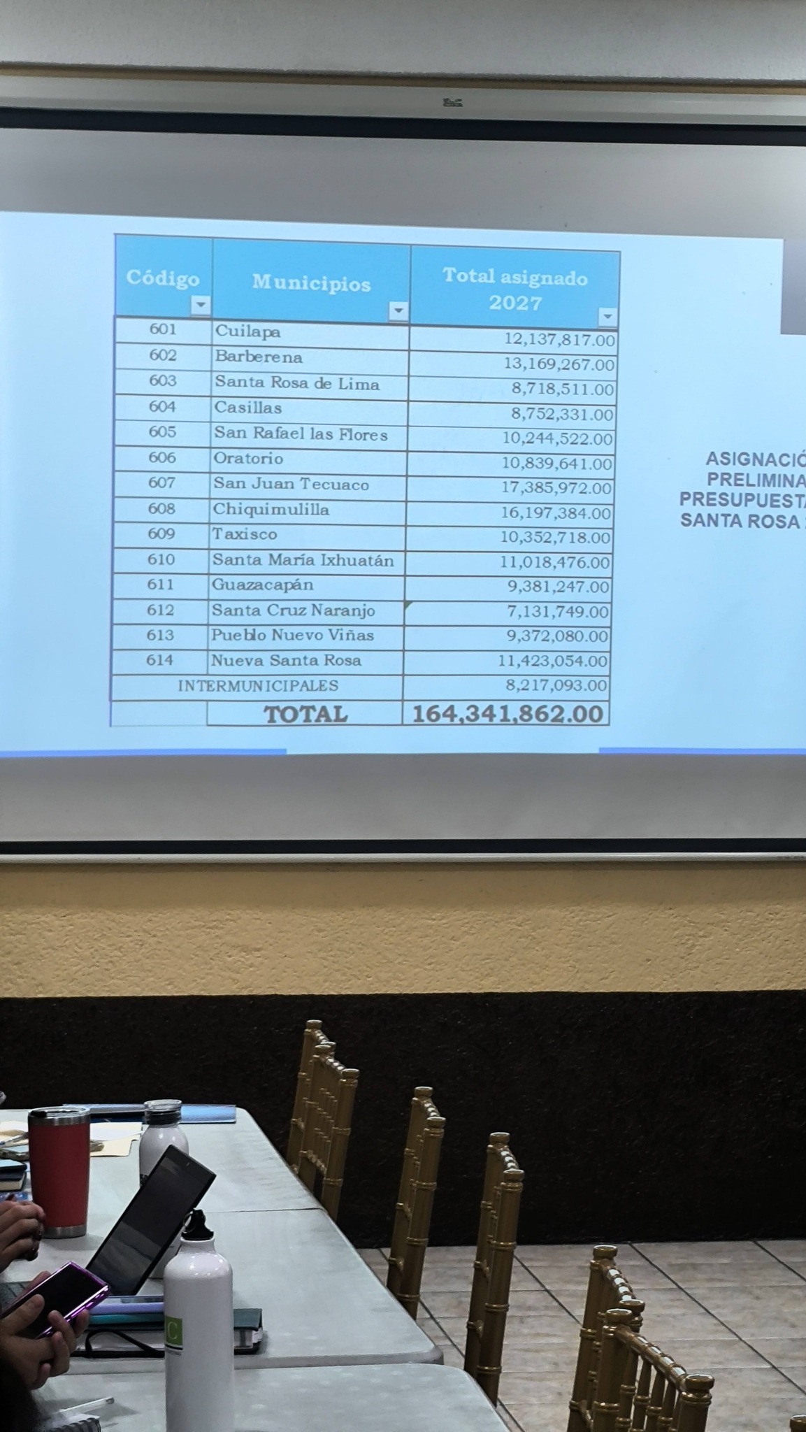 Conozca la asignación presupuestaria preliminar por municipio para el departamento de Santa Rosa el próximo 2027.